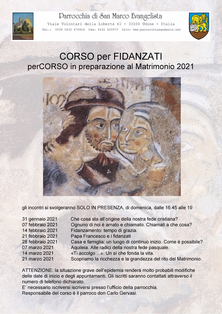 Con domenica 31 gennaio alle 16.45, salvo variazioni dettate dalla pandemia, inizieranno gli incontri del percorso in preparazione al matrimonio.