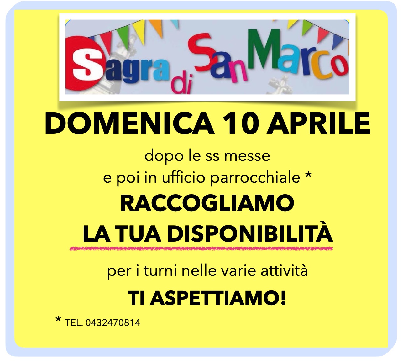 Domenica prossima all’uscita di chiesa ci sarà la possibilità di iscriversi ai turni per collaborare alle varie attività della sagra che riparte dopo tre anni.