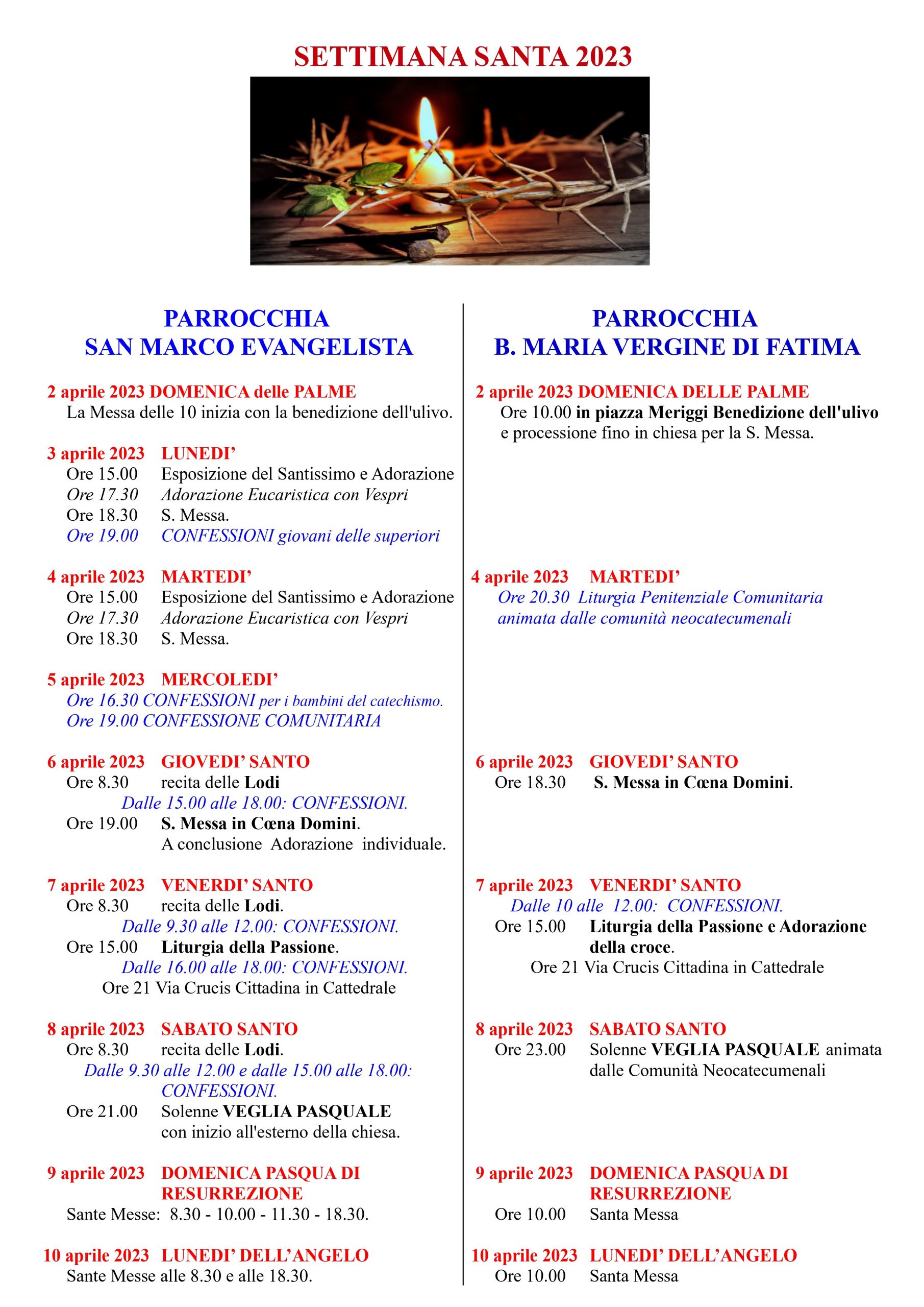 In occasione delle feste pasquali tutti gli ammalati e le persone impossibilitate a muoversi, potranno ricevere a casa la Confessione e la Comunione.