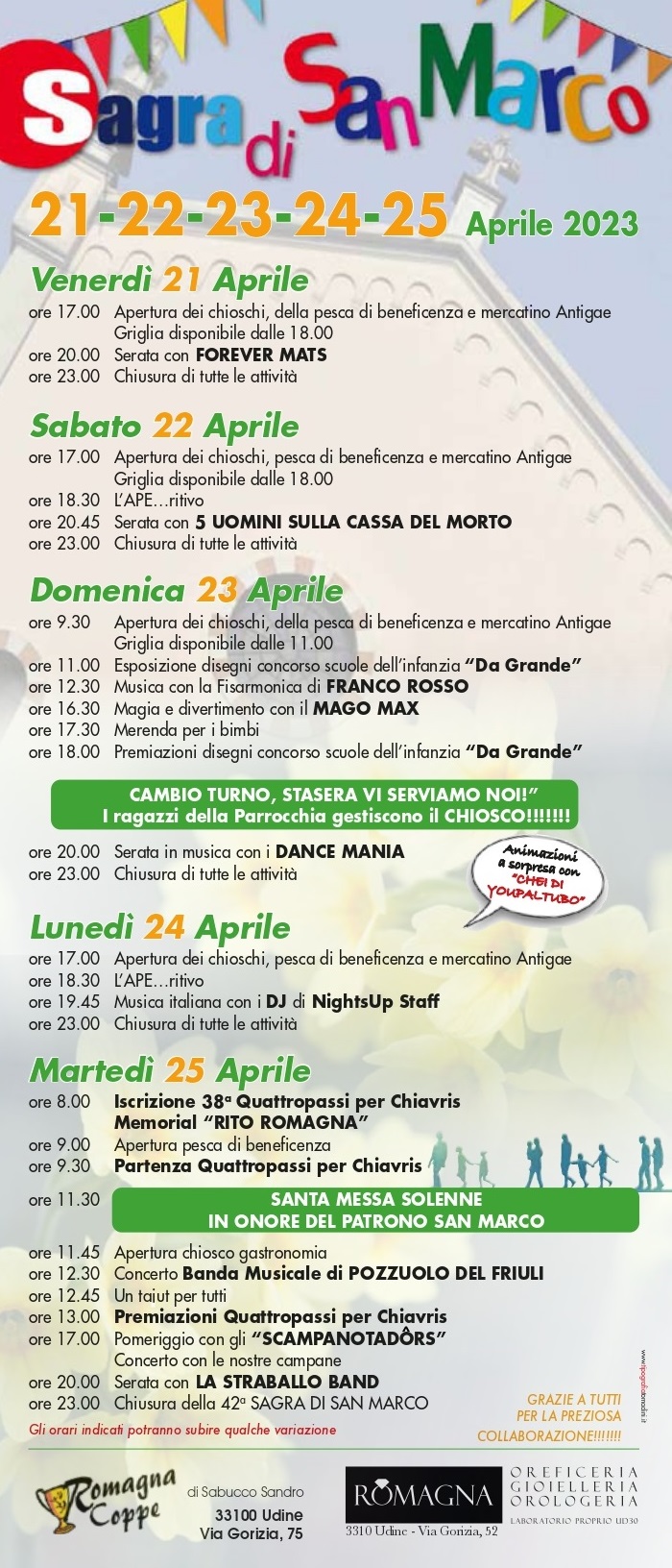 Venerdì 21 aprile alle 17.00 del pomeriggio, inizia la Sagra di San Marco.