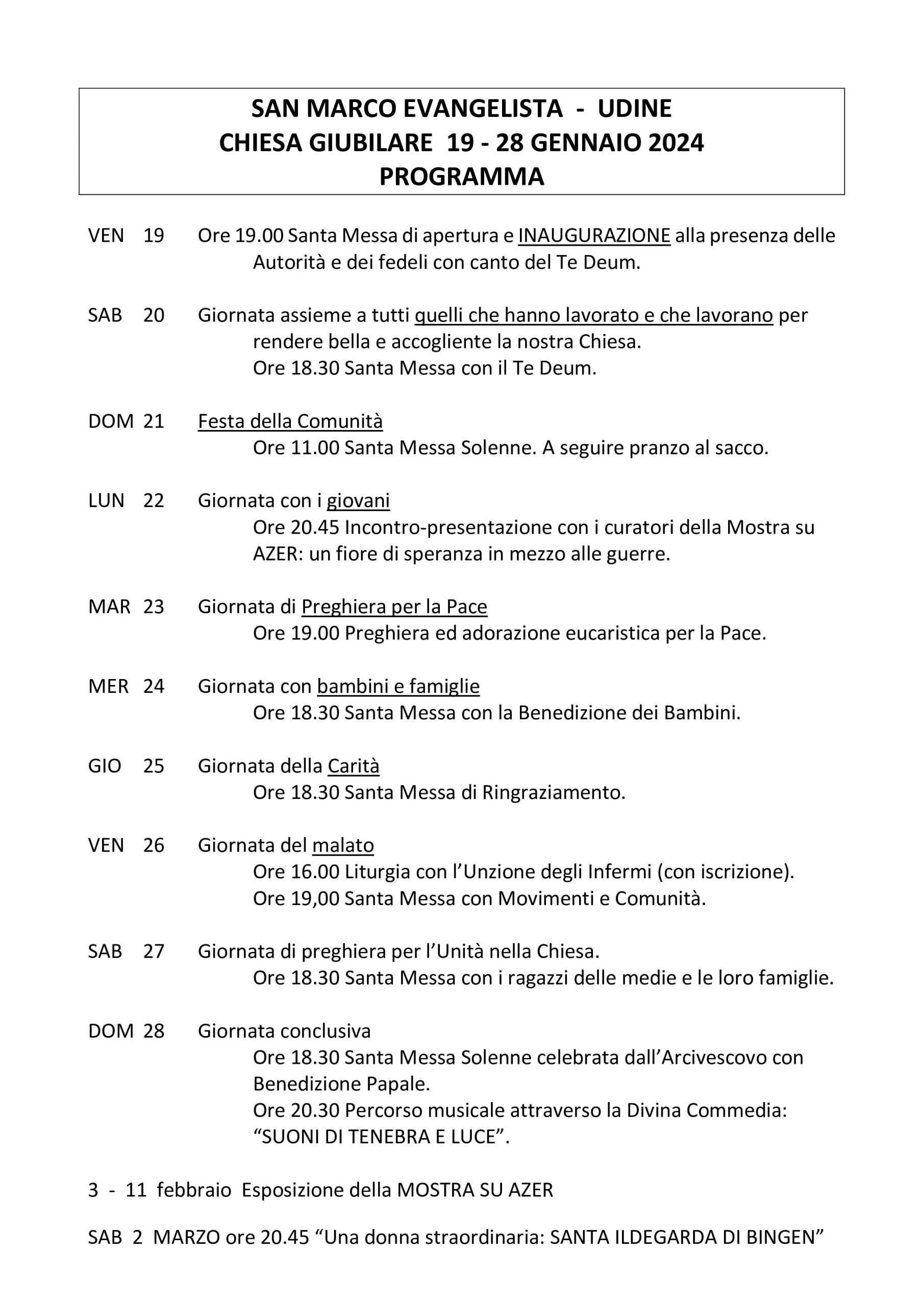 CHIESA GIUBILARE dal 19 al 28 GENNAIO 2024