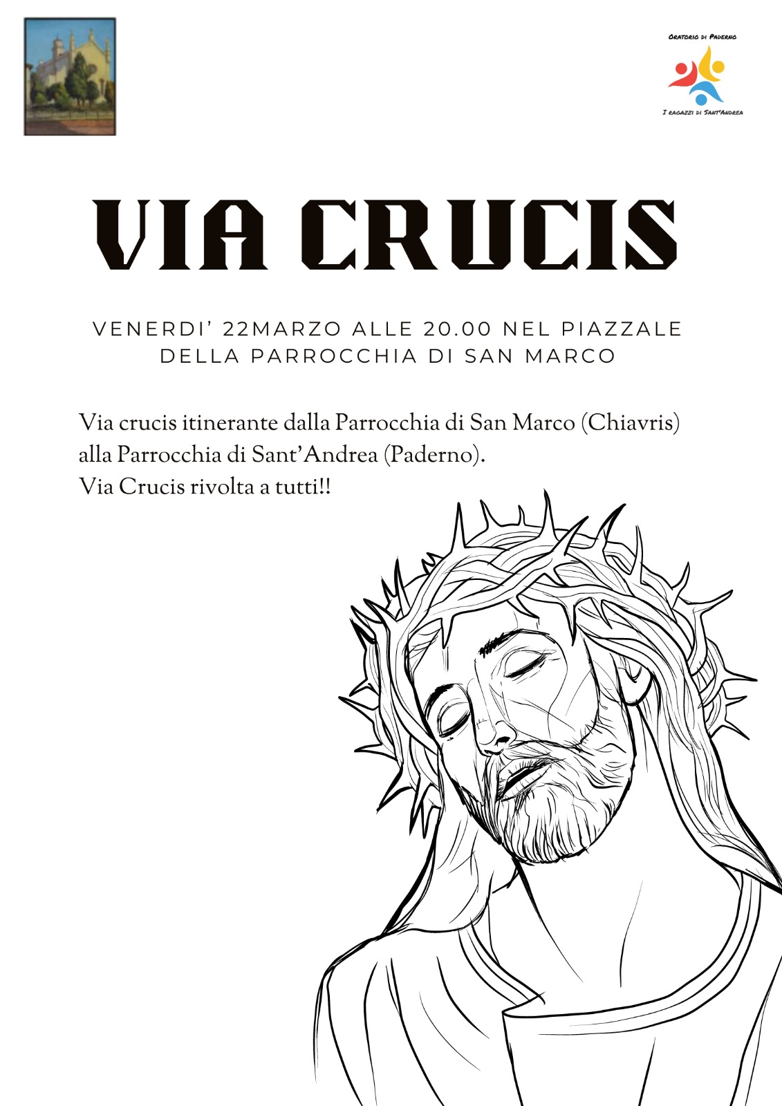 Venerdì prossimo 22 marzo vi invitiamo a partecipare all’ultima Via Crucis della Quaresima che sarà itinerante: inizio alle ore 20.00 qui a San Marco e conclusione nella chiesa di Paderno.