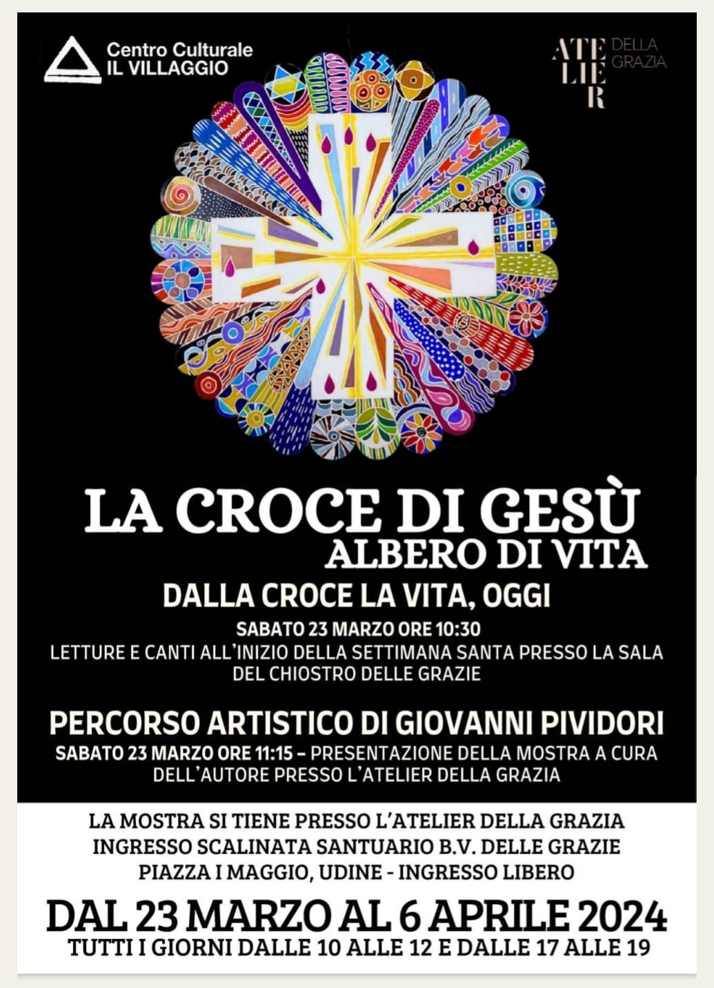 Inaugurazione sabato 23 marzo e fino al 6 aprile dalle 10.00 alle 12.00e dalle 17.00 alle 19.00 presso l’Atelier della Grazia ingresso scalinata santuario B.V. DELLE GRAZIE – Piazza I maggio – Udine – ingresso libero
