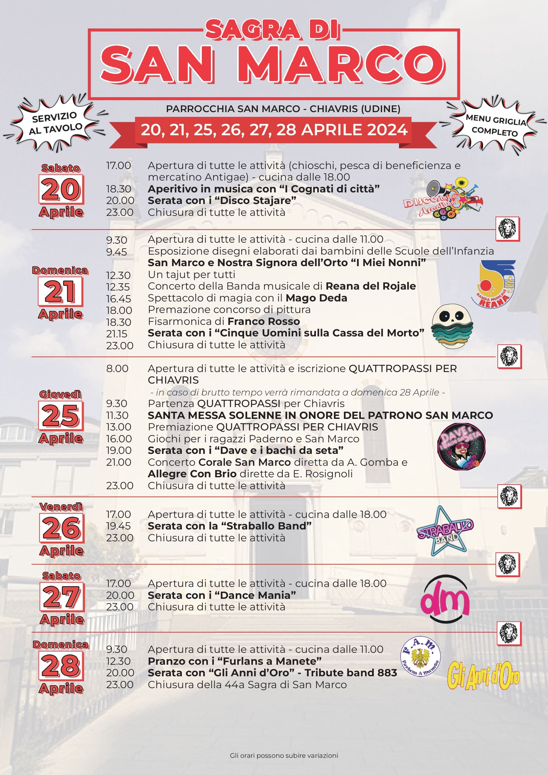 Sabato 20 aprile comincia la Sagra di San Marco.