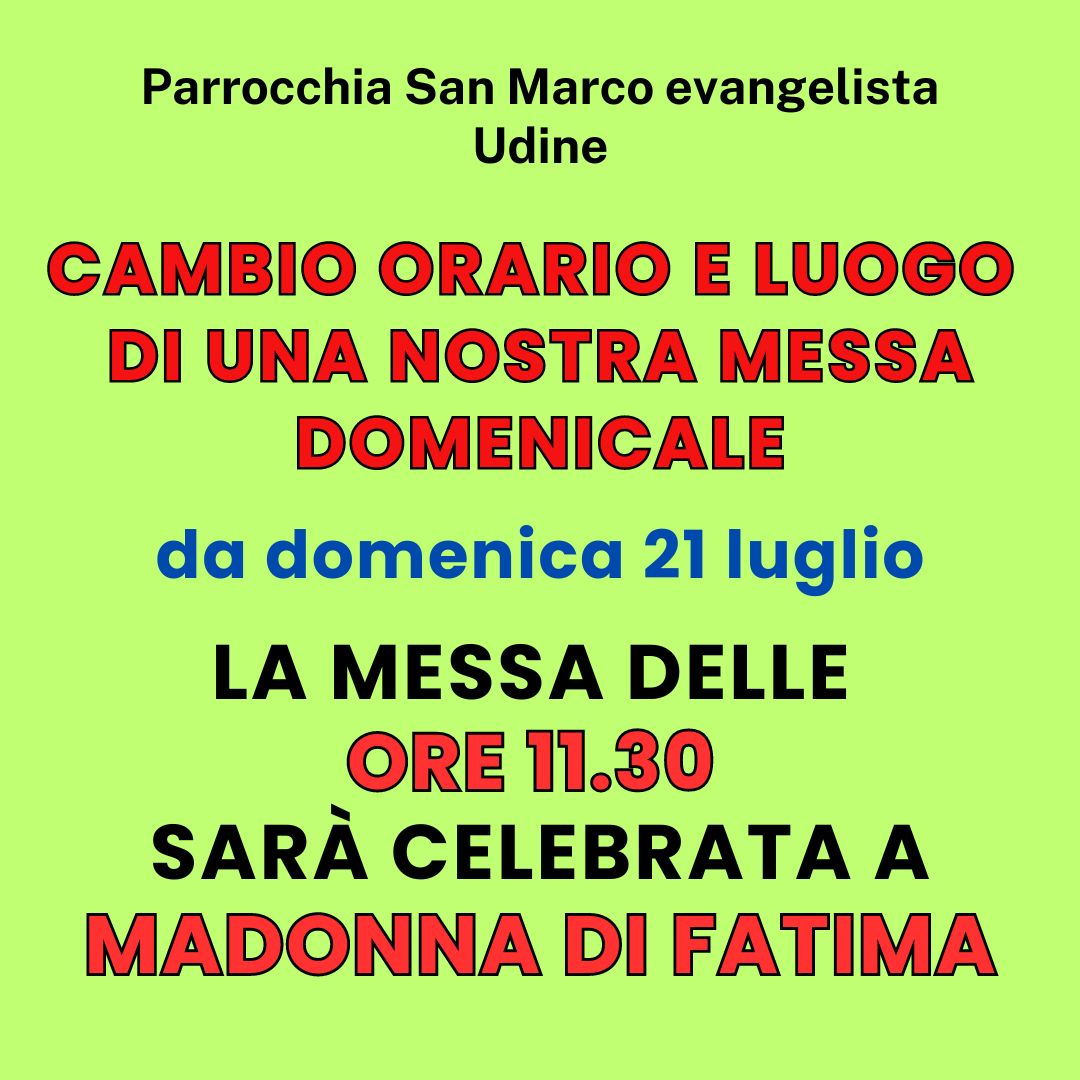 CAMBIO ORARIO E LUOGO DI UNA NOSTRA MESSA FESTIVA