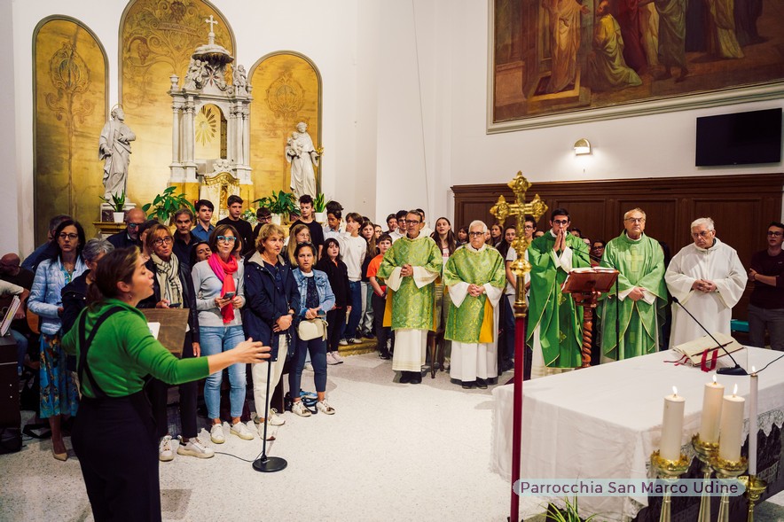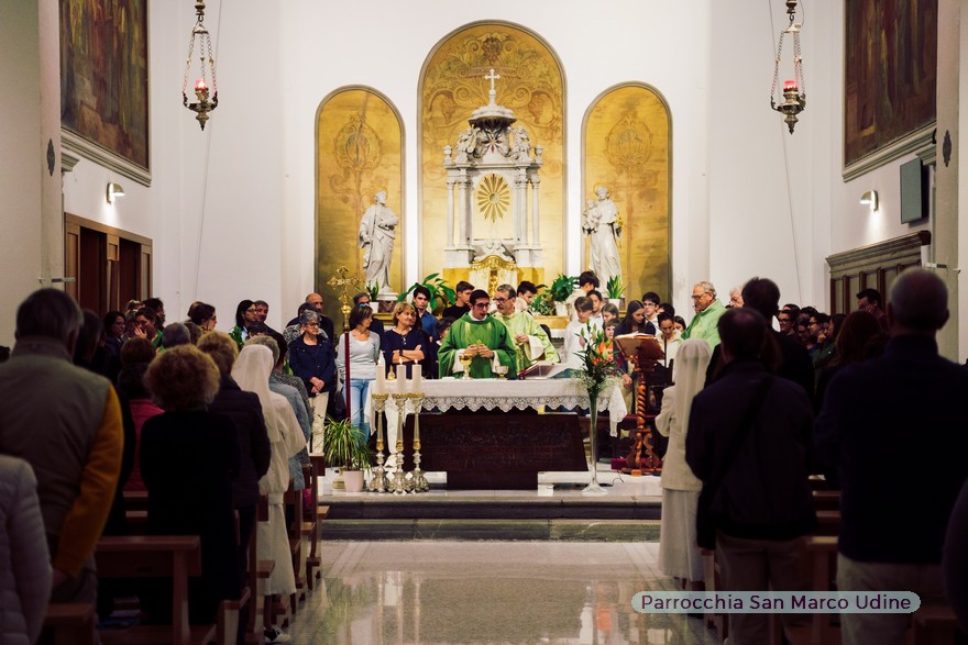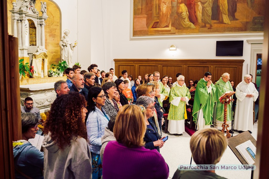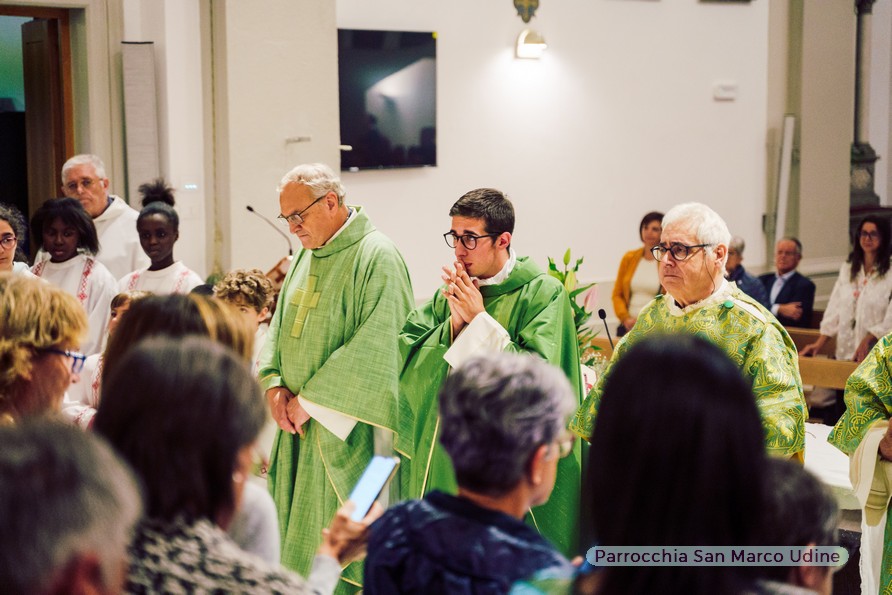 dico questa guardando in particolare – mi sia concesso – i tanti giovani con i quali abbiamo camminato assieme e che anche stasera hanno voluto essere qui presenti per rendere bella e festosa questa liturgia, e non solo, ma in questo grazie che tutti riassume e nessuno esclude anche a tutte quelle persone che a vario titolo nei cori, nella catechesi, nel decoro della chiesa, nella san Vincenzo, nella sagra, nel gruppo famigli e… ho potuto
