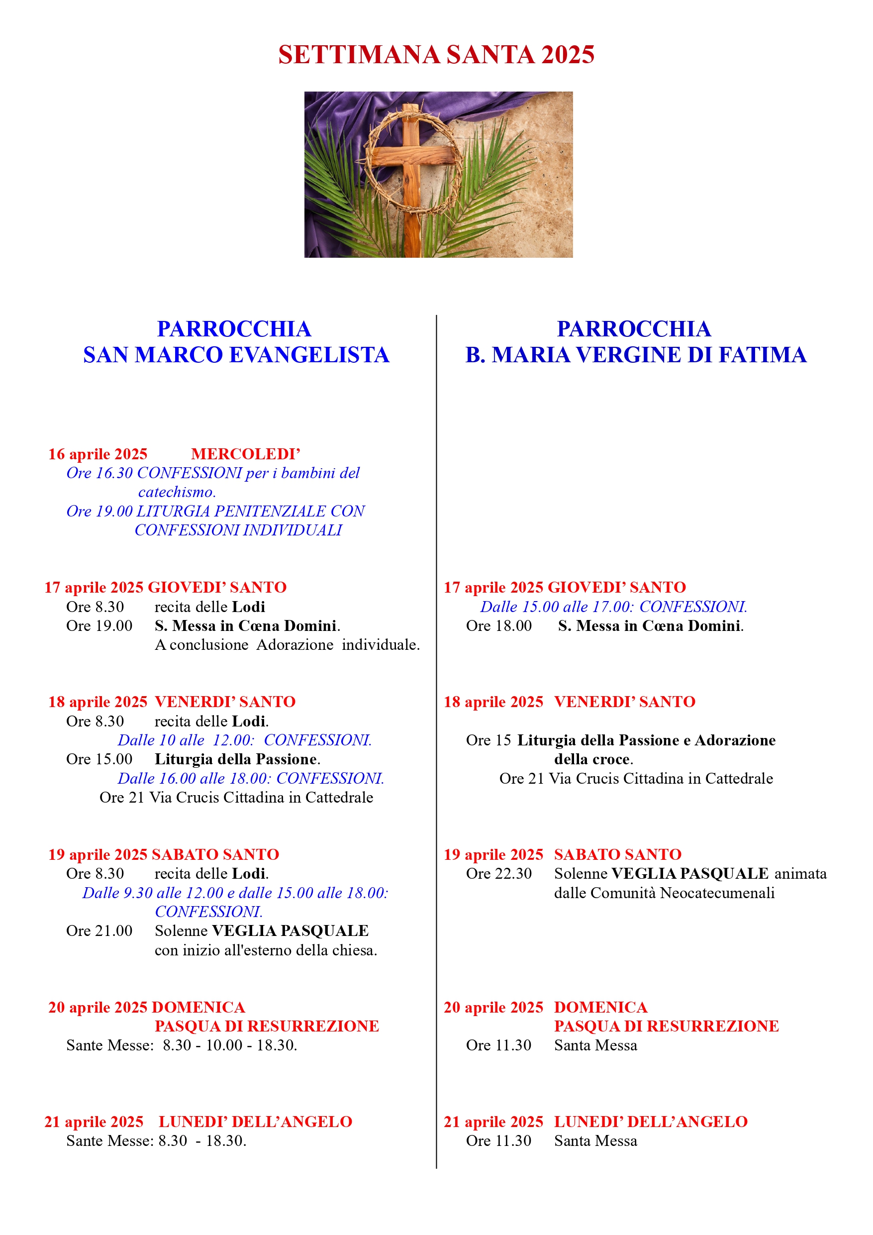 NELLE PARROCCHIE DI SAN MARCO E MADONNA DI FATIMA