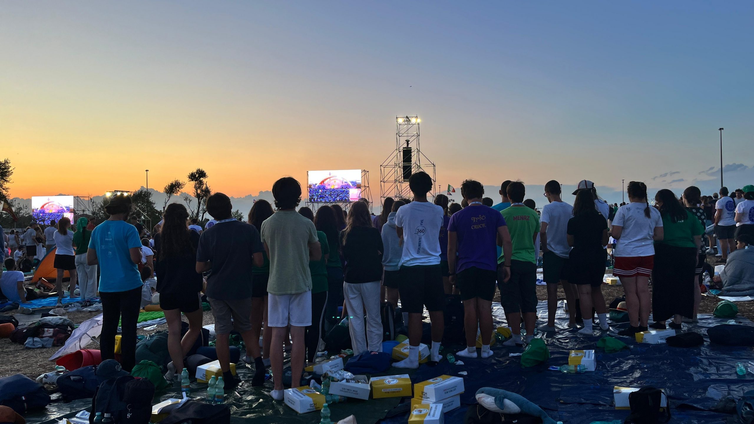 Pomeriggio percorso a piedi (carichi) verso Tor Vergata per la Veglia con papa Leone.