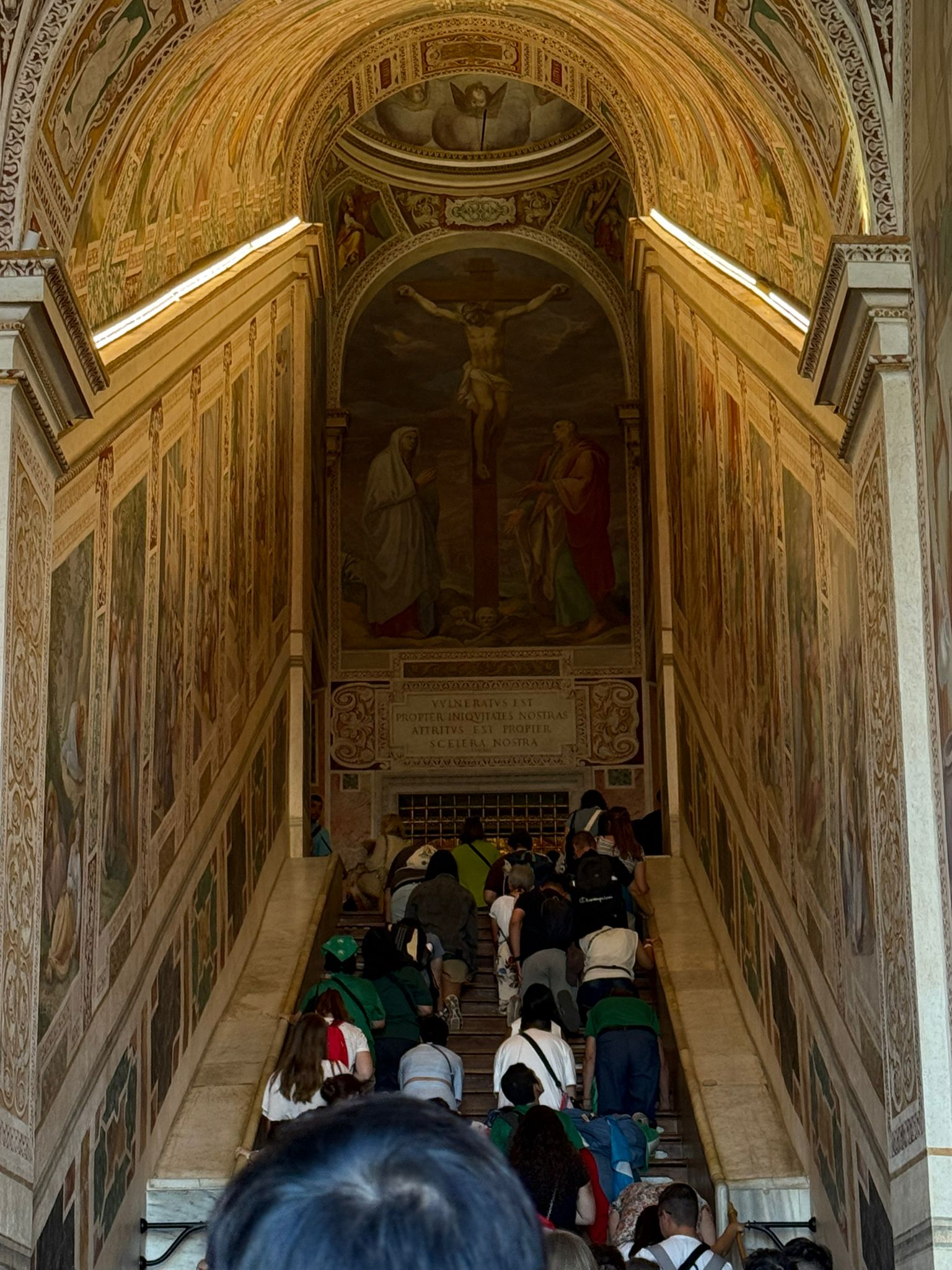 Abbiamo iniziato con la coda e la salita alla Scala Santa (in ginocchio – faticoso/doloroso).