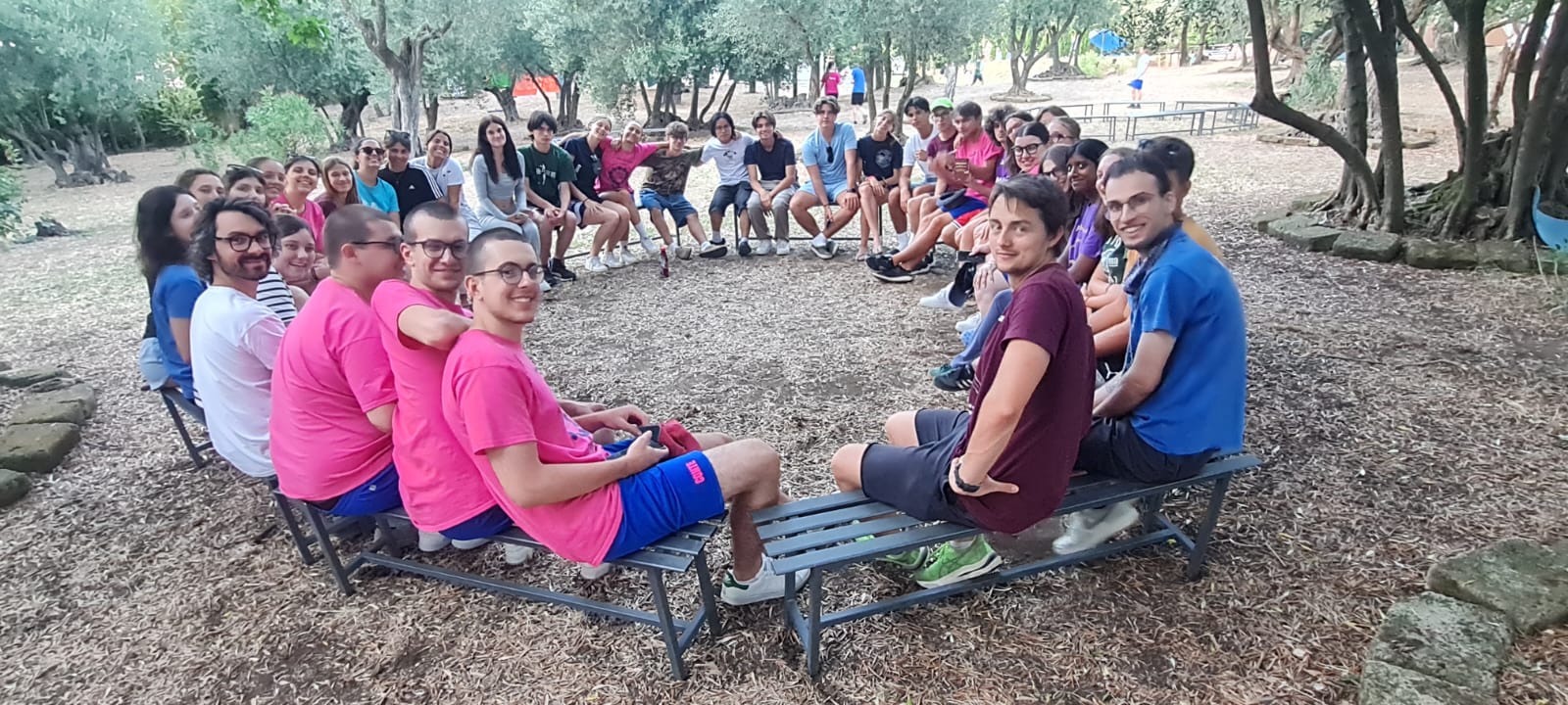 Ci siamo sistemati con le tende nel parco della Parrocchia di San Luigi Gonzaga a Ciampino.